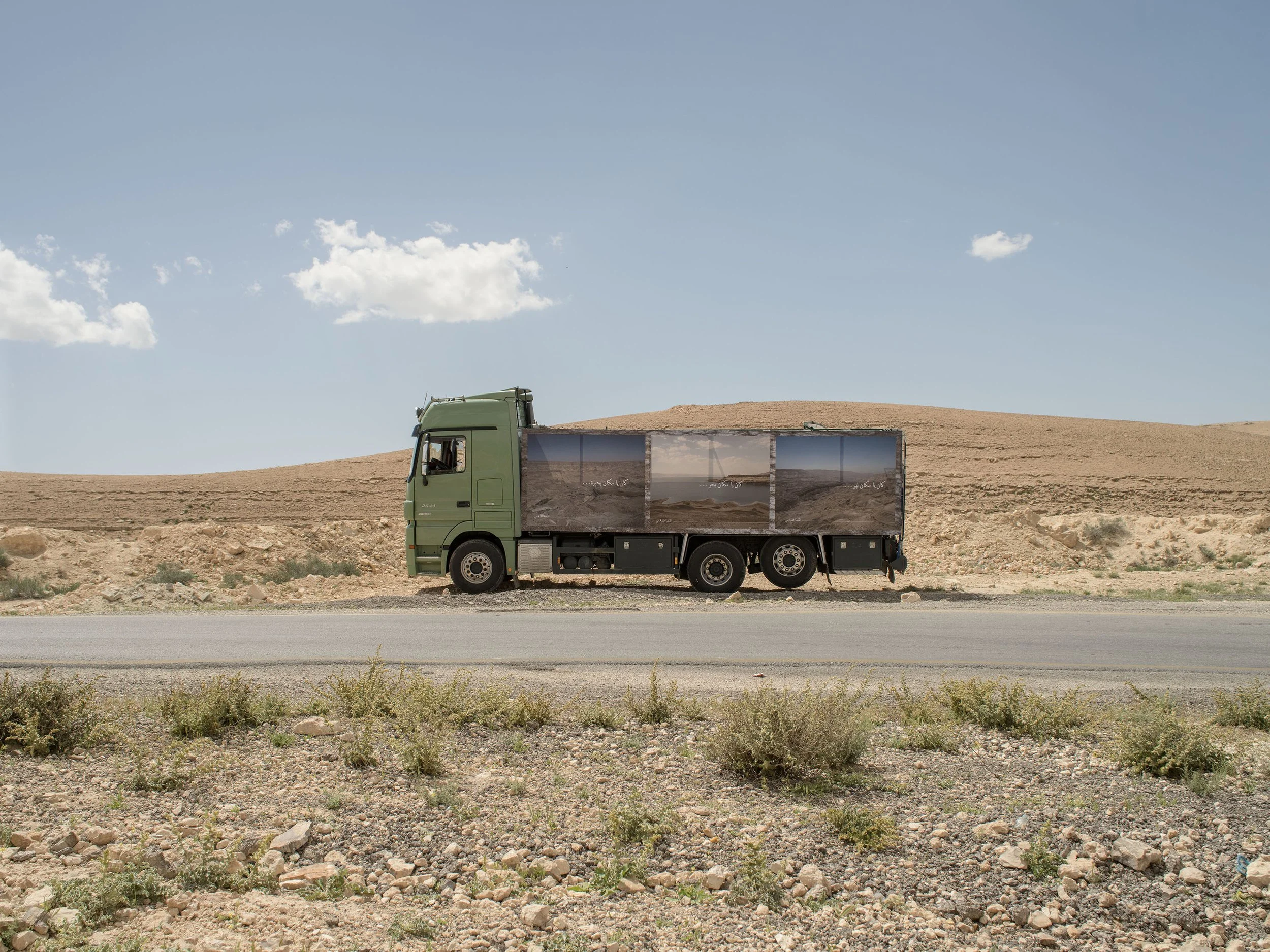 Once Upon a Time... Water is our public art action focusing on the impact of climate change in Jordan – the second most water-scarce country in the world. For it, we worked with Jordan-based award-winning Palestinian documentary photographer Laura Boushnak, who first took images across Jordan in different locations to reflect the water crisis – like the Dead Sea, where the water level continues to decrease, and the dried-out Mujeb dam. Then, she also rented a water truck and printed the images on the vehicle, pairing them with texts: “Once upon a time... river”; “Once upon a time... sea”; “Once upon a time... lake”. The water truck carried the images across the country, creating a mobile show.